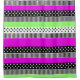 Patchwork of black and white and neon stripes with crimson and green fabric