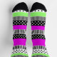 Patchwork of black and white and neon stripes with crimson and green fabric