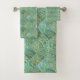 Individually or as a set, these bath towels are naturally beautiful, elegant and unique. Sparkling diamonds of water in shades of seafoam, aquamarine, blue, green, aqua and turquoise, like a patchwork of tropical water sparkling in sunlight. The design is created from photographs of rippling waves of a tropical sea. The cool, calm and soothing shades of blue and green are also as refreshing and invigorating as the element of water. These towels are part of a collection of coordinating bathroom designs.