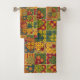 Patchwork Pattern Heart Button Stripe Green Yellow Bath Towel Set