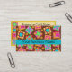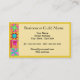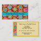 Make an impression with this business card for your quilt business, shop or guild. Coordinate with a matching business card holder. This business card features a quilt block design based on original art by Phyllis Dobbs. The design features favourite patchwork quilt blocks such as a log cabin, pinwheel, star plus unique blocks created in vibrant and dynamic colours on a warm brown background. The colours are fuchsia pink, orange, turquoise teal blue, yellow, red, brown and green. Fully customisable for all your business and contact information.