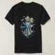 I give wanted to give this a 4 instead of a 5 because these Basic DARK T0shirts run unexpectedly SLIM or Narrow. Which is great if you do not have a potbelly, but I have a paunch. It isn't the shirt's fault that I've got a beer belly. The design and shirt itself is a quality cotton shirt. The color is more of a deep purple, but still a very pretty color. The Basic DARK T-shirts run a bit SLIMMER than the Basic Ts. The neck is a fraction narrower (or seems to be narrower) also. I'm a paunchy middle-aged woman and my neck is 12 inches (31cm) thick and the neckline fell about the same as in the photo of the man, and I had the desire to tug it a bit. So if you're a thick necked man or like loose shirts, be aware these are slimmer shirts. Once I get rid of my lockdown paunch it'll look great. The shirt washed well in cold water with no apparent bleeding. We don't have a dryer, so it hung dry. Did not shrink. Love the colors and the design. The design looks smaller on my shirt than it does on the model on-line. But still, it looks good on the shirt. The printing looks as it does on the model, just the size seems fractionally smaller. Washed garment in cold water, hung dry and design appeared unaffected.