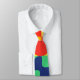 This necktie has a Bauhaus design of squares with odd shapes inside, repeated across the design.
