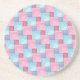 An attractive, sandstone drinks mat or coaster, with a patchwork of pink and blue denim pattern, from a handpainted watercolour design by Judy Adamson.