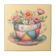 A charming fusion of cozy cottagecore and nostalgic patchwork, this design features a teacup bursting with whimsical florals in soft, pastel hues. Each panel of the teacup is adorned with vintage-inspired fabric patterns—plaids, florals, and polka dots—stitched together with visible seams for a handmade, quilt-like look. The surrounding flowers bloom in gentle tones of coral, blush, and cream, adding warmth and a touch of fantasy. Set against a harmonious blend of soft greens and delicate blues, the composition evokes a sense of comfort, creativity, and slow-living aesthetics. Ideal for those drawn to floral whimsy, retro patterns, and the charm of handcrafted motifs. AI generated artwork.