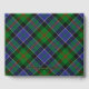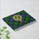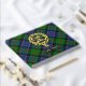 Clan Paterson crest badge surrounded by a strap and buckle over tartan background. Custom front, back and spine text.