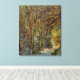 Path in the Woods by Vincent van Gogh is a vintage fine art post impressionism landscape painting. Take a nature walk on a trail in the forest with trees lining the pathway during the autumn season.