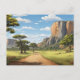 A scenic digital illustration inspired by the breathtaking landscapes of Zimbabwe. Featuring a red dirt road winding through a lush savanna dotted with flat-topped acacia trees and towering granite hills, the image captures the serene and majestic beauty of southern Africa. Perfect for celebrating the natural wonders and cultural richness of Zimbabwe’s iconic wilderness.