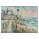 Capture the serene beauty of coastal living with this charming watercolor featuring a seaside cottage and graceful lighthouse overlooking the ocean. A weathered wooden path, lined with colorful spring wildflowers, leads through the landscape, inviting you to stroll toward the sea. Seagulls rest and soar in the gentle breeze while glowing lights from the cottage create a warm, welcoming atmosphere. Soft pastel skies and peaceful waves complete this whimsical, cottagecore coastal scene. Perfect for beach house decor, spring wall art collections, and those who adore dreamy seaside landscapes. Display this as part of the Cottage by the Sea Collection for a cozy and nostalgic touch to any room. AI generated artwork.