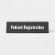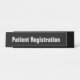 You can personalise this name plate with your custom text (shown: Patient Registration). The display text is white. The name plate is black.