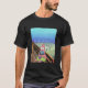 I give wanted to give this a 4 instead of a 5 because these Basic DARK T0shirts run unexpectedly SLIM or Narrow. Which is great if you do not have a potbelly, but I have a paunch. It isn't the shirt's fault that I've got a beer belly. The design and shirt itself is a quality cotton shirt. The color is more of a deep purple, but still a very pretty color. The Basic DARK T-shirts run a bit SLIMMER than the Basic Ts. The neck is a fraction narrower (or seems to be narrower) also. I'm a paunchy middle-aged woman and my neck is 12 inches (31cm) thick and the neckline fell about the same as in the photo of the man, and I had the desire to tug it a bit. So if you're a thick necked man or like loose shirts, be aware these are slimmer shirts. Once I get rid of my lockdown paunch it'll look great. The shirt washed well in cold water with no apparent bleeding. We don't have a dryer, so it hung dry. Did not shrink. Love the colors and the design. The design looks smaller on my shirt than it does on the model on-line. But still, it looks good on the shirt. The printing looks as it does on the model, just the size seems fractionally smaller. Washed garment in cold water, hung dry and design appeared unaffected.