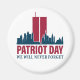 This magnet features the World Trade Centre and Twin Towers with the texts "We Will Never Forget", and "Patriot Day". It is to commemorate the September 11 terrorist attack of the World Trade Centre. It is perfect for the survivors, family members, friends, and first responders during the attack on its 20th anniversary.