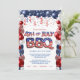 Celebrate Independence Day with this festive invitation featuring balloons and confetti streamers in red, white, and blue. Text "4th of July BBQ" are in balloon lettering flag style. Easy to customise by clicking "Personalise".
