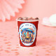 This patriotic red white and blue paper cup will coordinate with your holiday party decorations. The cup was created from an AI generated image.