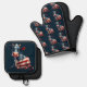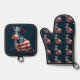 Patriotic American Flag Cow Illustration Oven Mitt & Pot Holder Set