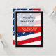 Celebrate any military, patriotic occasion with this personalised custom party invitation. Red white and blue waving flag with steamlined text design. American flag for USA Patriots!