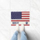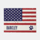 Patriotic USA American Flag dog bowl mat. This extra large dog food placemat features a rustic American Flag and cute paw print.