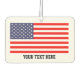 Patriotic American flag car air freshener. USA pride. Red white and blue flag of America with custom text for name, funny quote or monogram. Great for 4th of July / Independence day party. Stars and stripes design to refresh your auto with different cool scents to mask dog / pet smell and other dirty stinky odours. Unique gift idea for men and women. Create your own for dad, mum, mother, father, uncle, grandpa, brother, son, sister, wife etc. Custom air refreshener with customisable template. Make it smell like a fresh new car or the sea. Double sided design. Make your own slogan or saying  for army veterans, democrat or republican political message, environment etc.