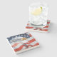 This coaster has a photograph of a Bald Eagle overlaid with the American Flag