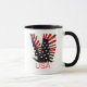 A bold and patriotic illustration featuring a bald eagle in flight, a strong national symbol of the United States. The eagle's wings are designed with elements of the American flag, using red, white, and black colors and white stars against dark feathers. The graphic has a distressed, stylized look, contrasting with the realistic depiction of the eagle's head. The text "USA" is displayed prominently in red at the bottom of the image.