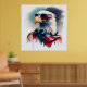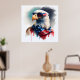 Patriotic watercolor bald eagle with blue glasses and bandanna in the colours of the American flag