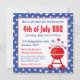 Patriotic design featuring a red barbecue grill with fireworks. Star border or star and stripes border. Create the perfect invitation for your next patriotic barbecue or family reunion on the 4th of July, Memorial Day, Labour Day or any summer party. Matching postage, caps, T-shirts, bags, mugs and more! Completely customisable design borders and text. PinkInkArt original!