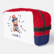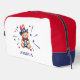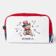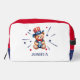 Patriotic personalised dopp kit or toiletry bag with a kid's name. Design with a bear and stars in red, white, and blue colours.