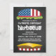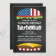 Customise this red white and blue cheeseburger design with your own type of party text.