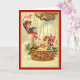Birthday card with children riding in a hot air balloon, including a boy wearing a red sash waving an American flag. The basket of the hot air balloon is decorated with red flowers and blue ribbons.