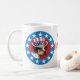 I like to buy and review my own work to ensure you get an outstanding product and I’m happy to give the Primary Colours Beach Football Mug 5 stars because it meets my expectations completely. Pleased with it I am. Zazzle mugs are well fabricated, microwave and dishwasher safe. And this yellow red and blue panoramic wraparound motif is sealed with a durable and sparkling Orca polished gloss glaze finish. It’ll never rub off! The size and energy of two jostling figures and a burly goal keeper fit the mug's circular shape well. There's momentum in the carousel effect as the two jostling figures repeat and move right around the mug and meet a burly goal keeper. Big sharp original images precisely drawn and delicately captured in blue and red with plenty of bright yellow! An ideal gift for anyone who plays ball! A fun gift for all beachball and football fans. A pair with the Retro Grey-Grain Beachball Player Mug. Available in two sizes and several styles including Black Ringer, Travelling, and Stern. Go have a peek!