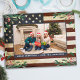 Send Merry Christmas greetings to friends and family with this unique USA American Flag Christmas Card - USA American flag design vintage red white blue design with holly and berries. Personalise with your favourite photo, message and family name. This patriotic Christmas card is perfect for military families, veterans, patriotic family and veteran service department christmas cards. COPYRIGHT © 2020 Judy Burrows, Black Dog Art - All Rights Reserved. Patriotic Christmas Photo Vintage American Flag Holiday Postcard