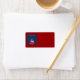 Patriotic, red, white and blue Christmas tree featured on this holidays address label.
