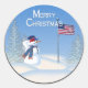 Patriotic Christmas Snowman - Round Sticker
