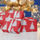 Patriotic Christmas Tree on red with snowflakes Wrapping Paper