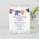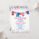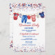 Celebrate your little firecracker with this patriotic "All-American Baby" shower theme! This charming watercolor design features a red, white, and blue clothesline strung across the top, adorned with adorable baby clothes in classic USA colours, watercolor stars surround the layout, adding a whimsical sparkle and festive flair. Perfect for a summer baby shower, 4th of July-themed gathering, BBQ-themed party, or any celebration welcoming a new bundle of joy with stars, stripes, and lots of love.