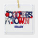 This patriotic ornament with Cooperstown in red, white and blue letters is perfect for any child that went to play baseball in Cooperstown! Put your child’s name on it and the year of the tournament on the back of the baseball player so they can remember an awesome week! Add personal details to the back.