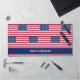 Stylish, Patriotic USA American Flag Desk Mat with CUSTOMIZABLE TEXT. The background is the STARS & STRIPES flag of THE UNITED STATES OF AMERICA in a tiled pattern. All text is CUSTOMIZABLE so you can amend the wording to suit your needs, eg. add family name, family motto, inspirational quote. Ideal gift for American home office decor.