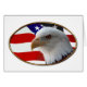 Greeting card with a patriotic photo of a bald eagle against the U.S.A. flag. Placed in a gold coloured oval frame. Great looking patriotic card for anyone, especially your Veterans or Military personnel.