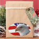 with a patriotic photo of a bald eagle against the U.S.A. flag. Placed in a gold coloured oval frame. Great looking patriotic gift for anyone, especially your Veterans or Military personnel.