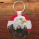 A wonderful image of a bald eagle posing in front of an American Flag.
