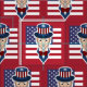 Fabric with an illustration of Uncle Sam, cute cartoony design for children of patriots, with flag of United States of America in the background