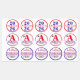 Row 1 - Design features the year in large blue text with family name in red displayed across front. Design is featured against a white background and bordered with a bright red circle.