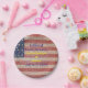 Plastic look USA flag with fully changeable text. Text for the family name, event, such as a reunion, location and of course the date. Even if your relatives show up drunk as snakes, the party will be saved by these colourful Patriotic Family Reunion Customisable plates. No one in their right mind would think about throwing these babies in the trash. Your guests will want to frame them and paste them into photo albums and scrapbooks to preserve them for future generations. And, if your name happens to be Gifford, all you need to do is schedule your family reunion to match the date already on the plate and you don't even need to type anything. Just order up a couple hundred.