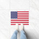 Doormat is shown with a July 4th patriotic USA Flag print design.