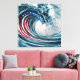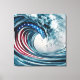 A powerful wave with the pattern of the American flag on it merging the natural force of the ocean with a strong patriotic symbol
