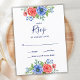 Patriotic Floral Red White Blue Wedding RSVP Invitation Postcard