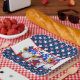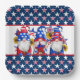 A Adorable Star Studded Paper Square Plate With Three Cute Patriotic Gnomes For Patriotic Holiday Picnic BBQs
