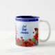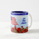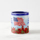 Patriotic we support our troops and veterans mug. American flag and poppies. God Bless America. In honour of our Troops and in memory of our Veterans.