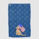 Tee up your American patriotism with this sweet Golden Retriever holding the American flag. Designed by Naptown Tails!