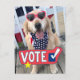 Get out there and vote in the next election! Design features a happy dog smiling in his patriotic sunglasses and stars and stripes bandanna, along with the graphic VOTE. Customisable text on back proclaims, "Make your voice heard!"